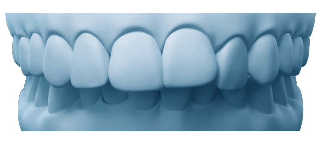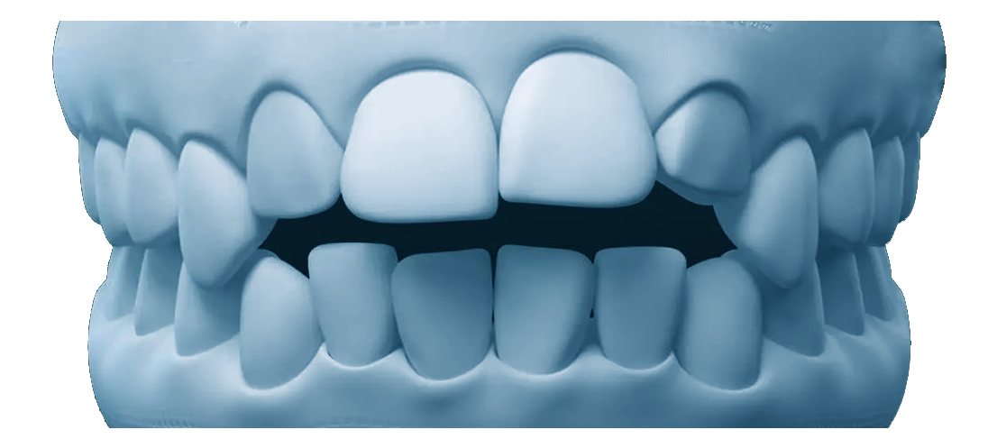 Les dents supérieures de devant se ferment devant les dents inférieures.