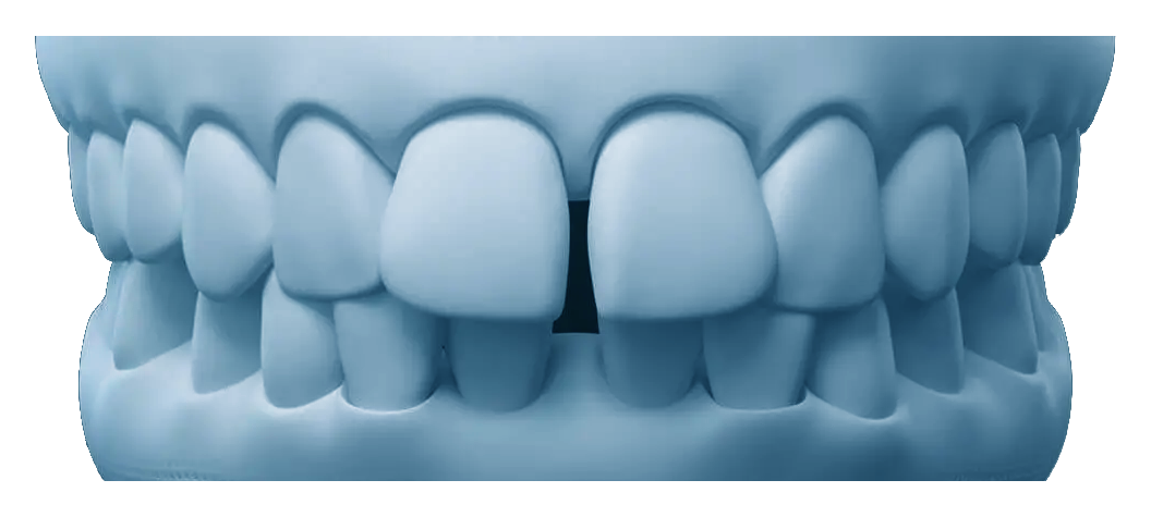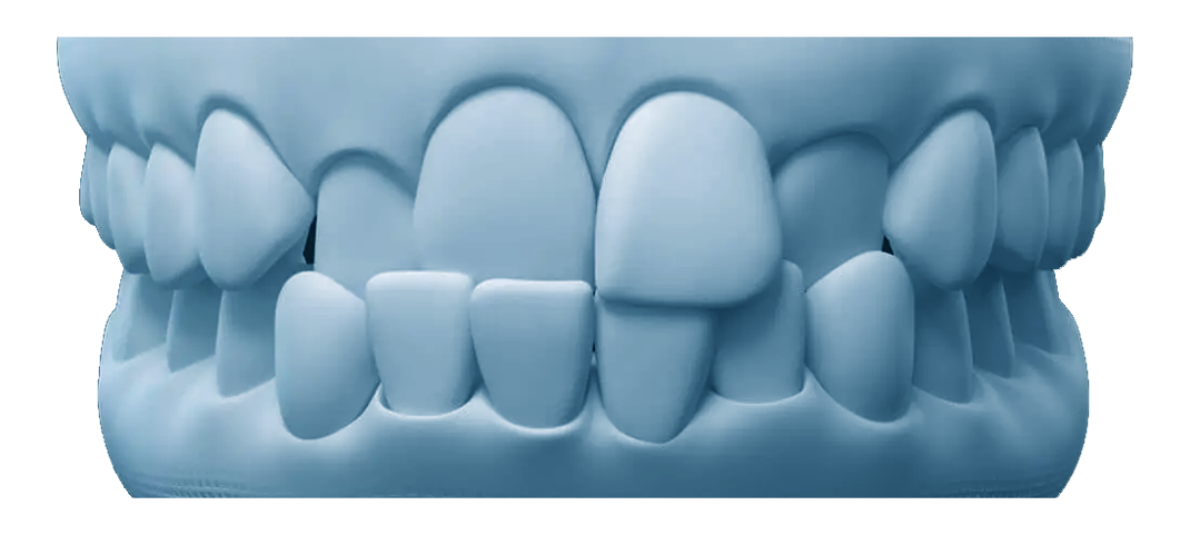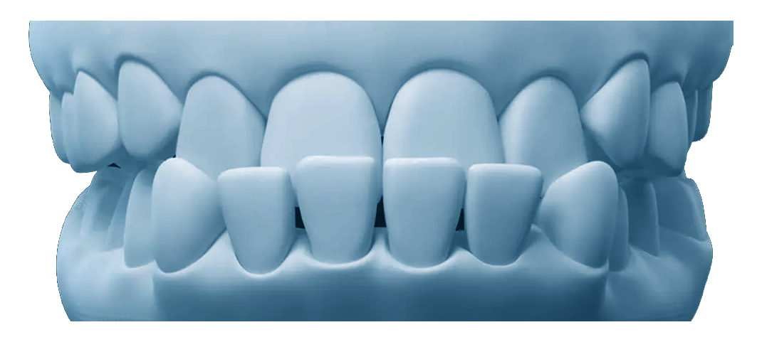 Les dents supérieures de devant se ferment devant les dents inférieures.